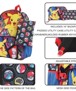 Pokemon Large Character Backpack 5-Piece Set